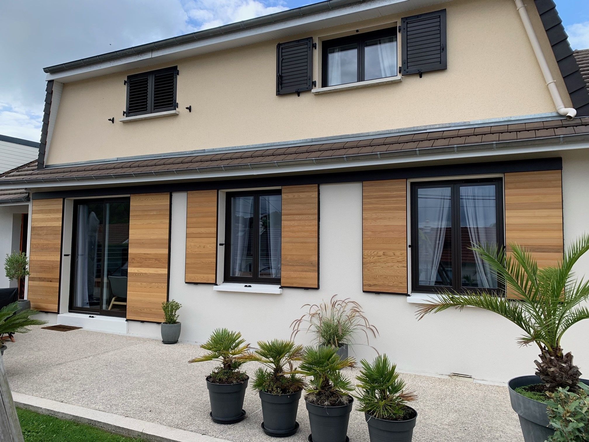 🔎 Ils se composent d’un cadre aluminium rigide et solide et d’un remplissage en bois Red Cedar. Ils assurent un charme authentique et naturel à votre façade